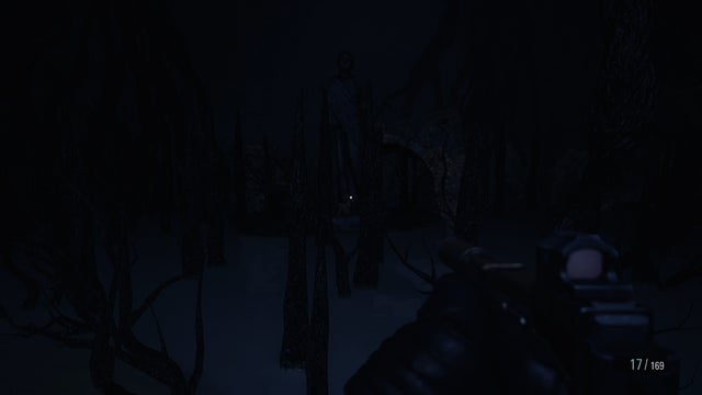 Chèvre protectrice – Avant de passer le Megamycète, il y a une dernière chèvre à détruire dans le jeu. Regardez à droite de la masse pulsante géante pour repérer la statue d’une femme au loin, au-delà d’une mare d’eau noire couverte de vrilles hérissées. La chèvre se trouve à la base de la statue, mais elle peut être extrêmement difficile à repérer, il est donc conseillé d’augmenter la luminosité !