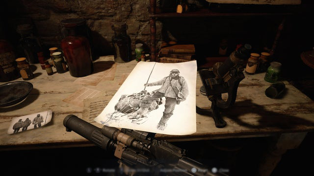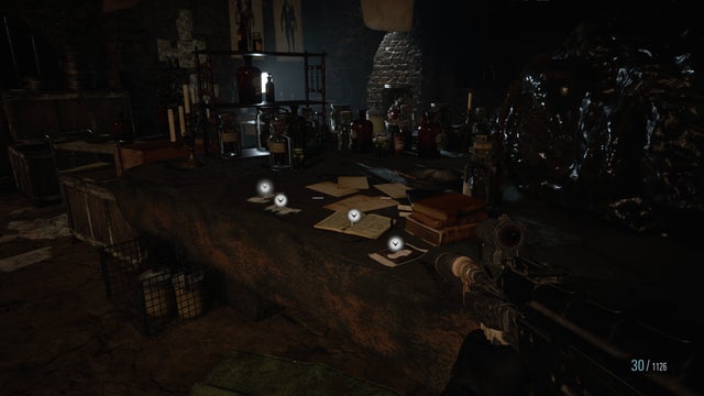 À l’intérieur, assurez-vous de vérifier le bureau le plus proche pour voir les rapports sur tous les seigneurs : Notes médicales : Dimitrescu, Notes médicales : Donna, Notes médicales : Moreau, et Notes médicales : Heisenberg. À proximité, il y a aussi un parasite Cadou à inspecter, et plusieurs photos – dont certaines des tests d’Eveline du jeu précédent.
