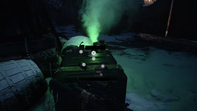 Une fois que vous atteignez la maison de Luiza, cherchez une caisse avec de la fumée verte pour refaire le plein de munitions et prenez aussi quelques grenades.