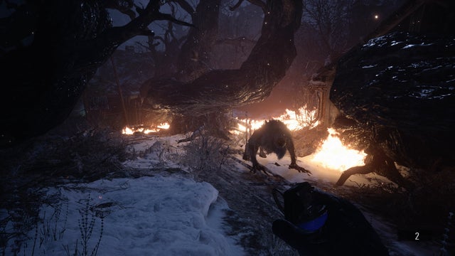 Plus haut, ce n’est pas un, mais deux loups-garous de Varcolac qui apparaîtront. Frappe-les rapidement avec une grenade aveuglante et décharge-toi sur l’un d’eux, puis enchaîne avec une grenade normale pour les faire voler, et éponge rapidement le dernier avec un chargeur plein. Si vous en avez besoin, il y a toujours de l’espace autour du champ pour courir et tirer si vous devez le faire.