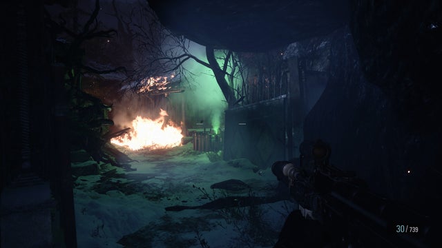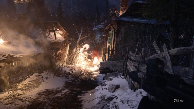 Avancez dans les bois avec votre escouade jusqu’à ce que vous atteigniez la lisière du village, surplombant les ruines de la Maison de Luiza. Regardez la bataille qui fait rage en bas avant de descendre vous-même, et préparez-vous à vous battre.