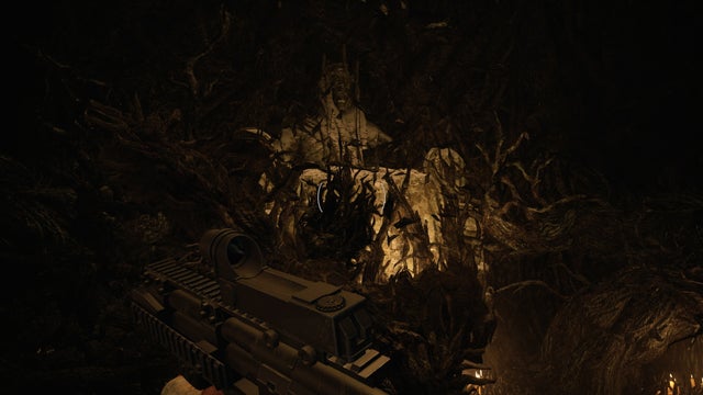 Lorsqu’elle s’envole à nouveau, elle peut invoquer plusieurs vrilles de racines noires qui se tordent avant d’invoquer une masse explosive au milieu. Utilisez les racines comme couverture, et vous pourrez éviter les tirs du milieu jusqu’à ce qu’ils soient épuisés – et vous pourrez peut-être viser entre les fissures pour la toucher pendant la séquence.