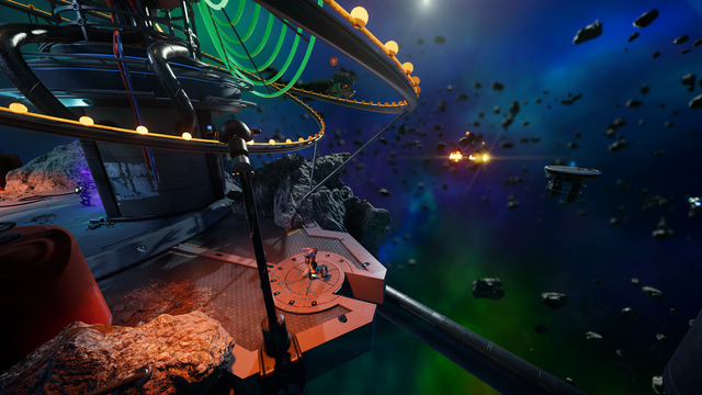 Une fois que vous avez réussi à passer, vous utiliserez deux cibles pour vous balancer sur un bateau pirate échoué. À la proue du navire, là où se trouve le rayon de soleil, se trouve le Robot-Espion. Faites attention en l’attrapant ! Il fera apparaître un groupe d’ennemis dont vous devrez vous occuper.