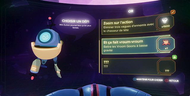 Les Robots-Espions sont un peu similaires aux Boulons d’or, sauf qu’il n’y en a qu’un seul dans chaque niveau (à une exception près : celui du Champ de débris de Scarstu). Vous devrez les collecter tous les 10 pour débloquer une arme super secrète et super puissante, mais vous pouvez aussi les trouver dans le menu des objets à collectionner pour obtenir des informations sur chaque monde.