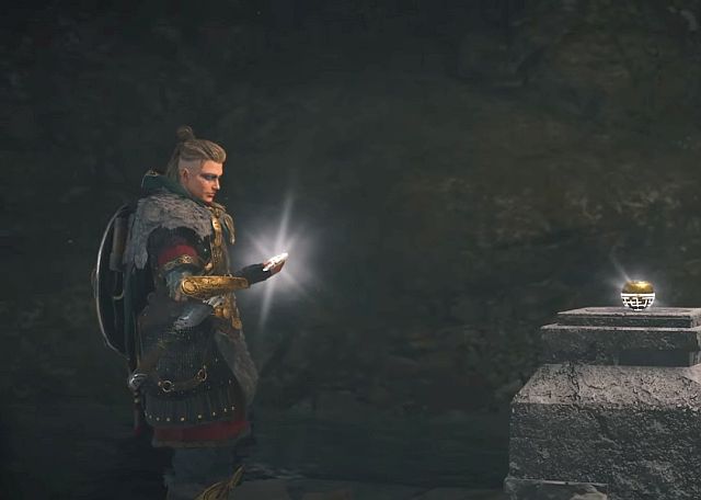 À l’intérieur, vous trouverez une pièce avec un orbe spécial. Vous vous approcherez de l’orbe et le prendrez. C’est l’Œil d’Odin, une clé qui vous aide à trouver la crypte d’Odin.
