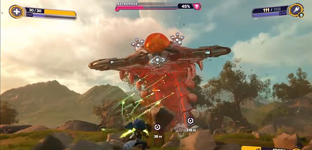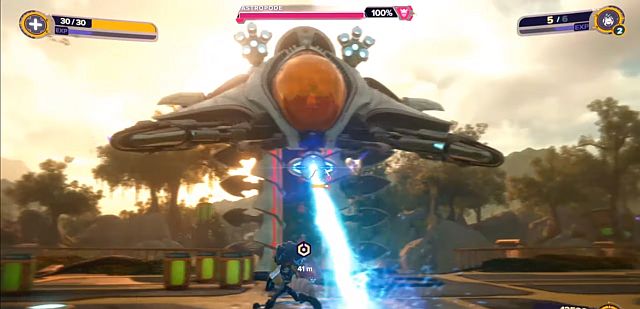 L’astropode s’étant écrasé au sol après avoir perturbé le stabilisateur de vol, tu vas devoir le vaincre pour récupérer Clank !