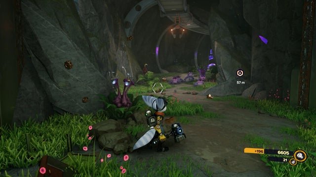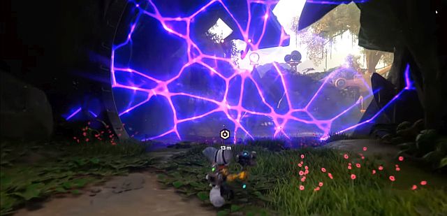 Cette poche dimensionnelle n’est pas accessible tant que vous n’avez pas emmené Clank à la planque de Rivet et que vous n’avez pas terminé les énigmes de l’anomalie dimensionnelle. Vous passez près d’elle pendant la section originale de scarapide, mais une barrière vous empêche d’y accéder.