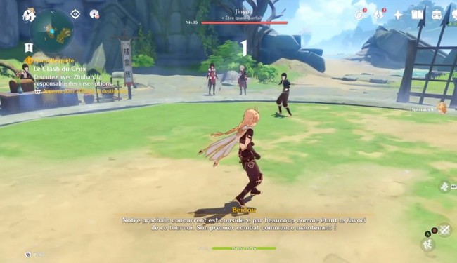 Parlez à Beidou et Kazuha pour les interroger sur votre dernier adversaire. Beidou va vous informer que les concurrents qui atteignent la finale ne sont pas nécessairement les plus forts, mais ils ont tendance à avoir quelque chose d’unique dans leur style et pour ce qui est de celui que vous allez affronter, ses capacités reposent sur sa vitesse et sa forme extraordinaire.