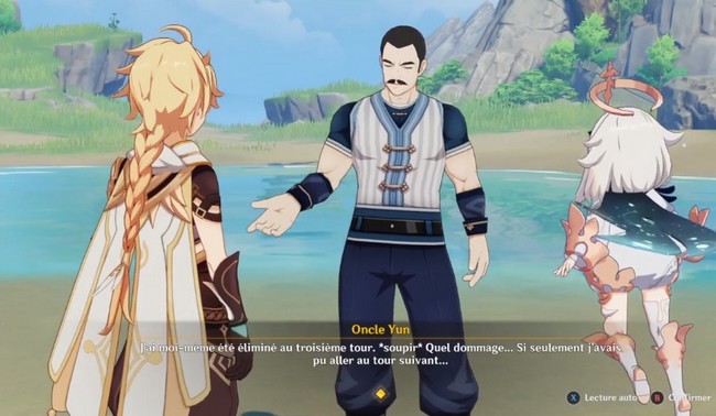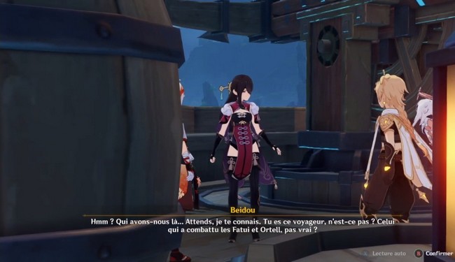Après la bataille, parlez à l’oncle Yun pour obtenir plus d’informations sur votre dernier adversaire. Comme il n’y a pas grand-chose à apprendre, va parler à Beidou, qui ne peut pas vous donner aussi d’informations, contrairement à Kazuha.