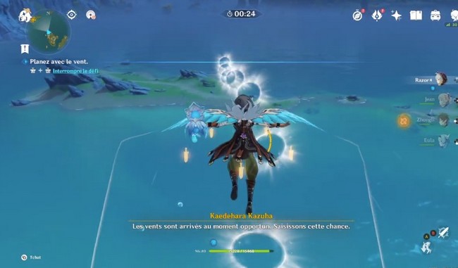 Il s’avère que le voleur s’est enfui avec l’œil divin quand personne ne regardait. Kazuha en déduit qu’ils ne se sont pas trop éloignés, et à en juger par le courant du vent à un ou deux mètres de l’arène, il avait entièrement raison.