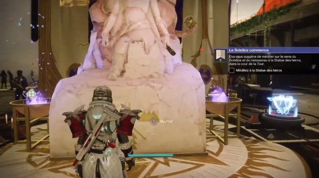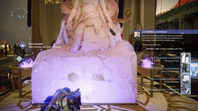 Vous obtiendrez le set complet de Solstice à l’emplacement de la Statue des héros qui se trouve directement à droite d’Eva dans la tour et ainsi la quête Nadir Apex.