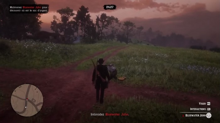 Si vous arrivez comme nous, les habitants vous feront descendre de votre cheval et commenceront à défendre John. Si cela se produit, battez-les et poursuivez-le aussi vite que possible. Si vous ne le faites pas, il trouvera un cheval et partira si loin que cette mission sera impossible à terminer.
