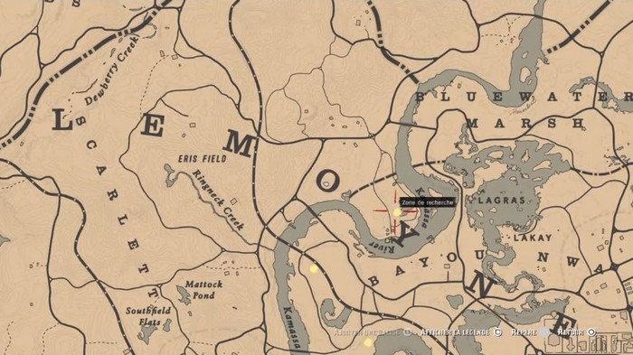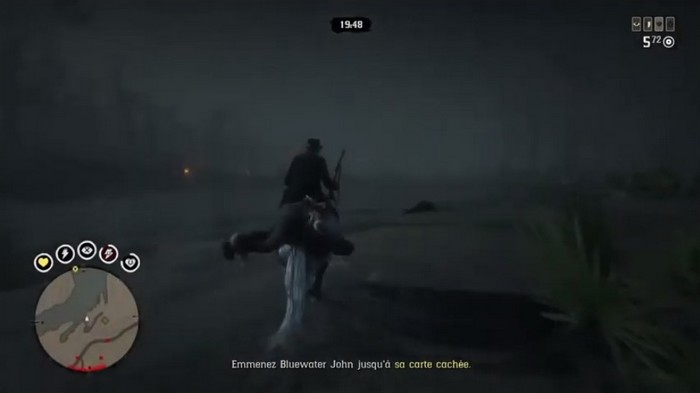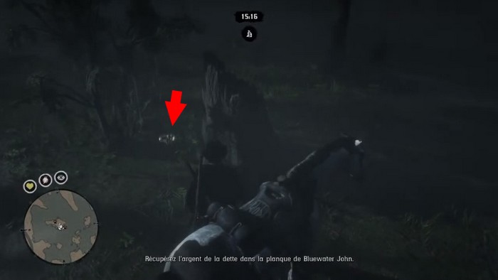 Une fois que vous l’avez ligoté et attaché à votre cheval, vous devez vous diriger vers quelques points de la carte où John a pu cacher son argent. Nous avons découvert qu’en se dirigeant vers le point marqué sur la carte ci-dessous, John nous a instantanément indiqué l’emplacement de la carte nécessaire pour trouver la vraie cachette. Ne perdez donc pas votre temps avec les autres zones, et allez d’abord à celle-ci.