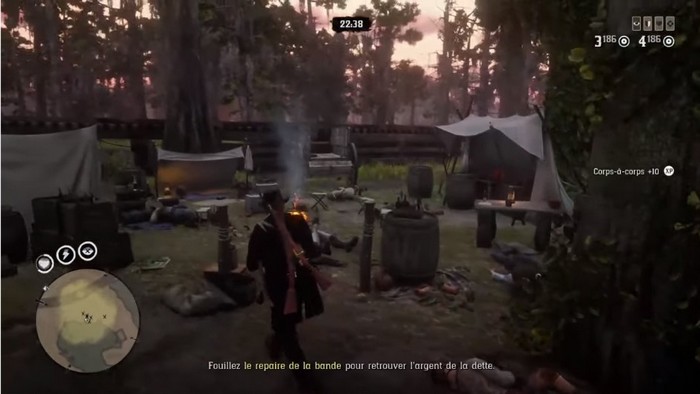 Le deuxième repaire de la bande est beaucoup plus difficile. Les hors-la-loi vont continuer à affluer pendant que vous cherchez le prochain indice. Tuez-les tous et pillez leurs corps au fur et à mesure. Le deuxième indice est caché dans le bâtiment le plus miteux. C’est une boîte sur le sol avec des papiers à l’intérieur. Cela vous donnera un point de repère vers le troisième et dernier repaire de la bande.