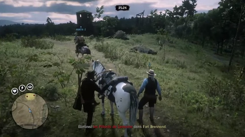 Avec Jeb, vous dirigerez vers un fort voisin dont un gang s’est emparé et où se trouve la cachette. Vous devrez nettoyer la zone. Il y a un ennemi avec une machine en plein centre, donc vous devriez être prudent avant d’y entrer.