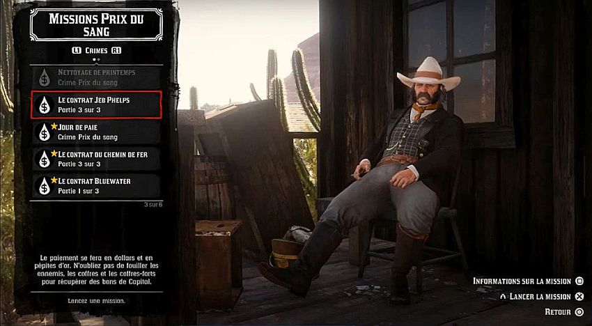 Lorsque vous recevez le Contrat Jeb Phelps, la première partie permet de récupérer Jeb Phelps auprès des chasseurs de primes et de le sauver. Vous commencerez le contrat près de la diligence où il est retenu. Cinq chasseurs de primes le protègent, trois à cheval et deux sur la diligence. Nous vous recommandons d’éliminer d’abord ceux qui sont à cheval et de vous arrêter un peu avant la diligence pour leur tendre une embuscade pendant leur trajet.