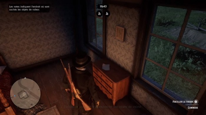 Après avoir éliminé tous les ennemis, vous devez fouiller la zone pour trouver les objets de valeur. Malheureusement, aucun des objets de valeur n’est là. Ce que vous devez faire, c’est aller à la maison avec le chariot an avant. Entrez à la maison et éliminez le monsieur à l’intérieur, ensuite vous devez interagir avec la note sur la chaise.