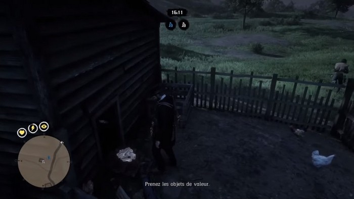L’endroit où ce groupe a caché les objets de valeur n’est pas très éloigné de votre position actuelle. Lorsque vous y arriverez, vous devrez fouiller à côté des poulets.