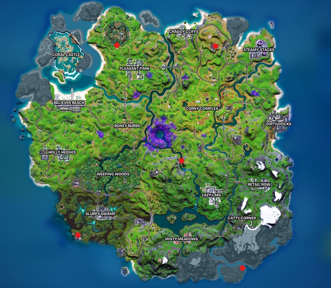 Comme toutes les semaines précédentes, l’emplacement exact des reliques extraterrestres sur la carte de Fortnite est conçu pour être un peu délicat. Ainsi, si ces points sur la carte peuvent vous aider, les emplacements précis nécessiteront un peu de travail.