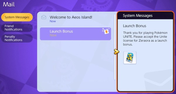 - Une fois que vous aurez lu le message, vous recevrez Zeraora comme bonus de bienvenue. Vous avez environ 30 jours pour réclamer ce bonus.