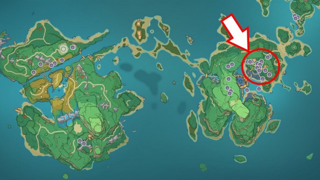 Vous devez chercher dans cette zone, comme indiqué ci-dessus. Comme dans la plupart des régions d’Inazuma, il y a beaucoup de verticalité ici, alors soyez prêt à chercher haut et bas. Vous trouverez également l’Hypostase Pyro sur l’île, mais vous devez vous attendre à un combat assez intense si vous prévoyez de vous y attaquer.