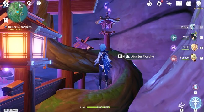 Pour trouver l’emplacement de la barrière, suivrez le Tanuki. Sautez dans la falaise et planez jusqu’en bas.