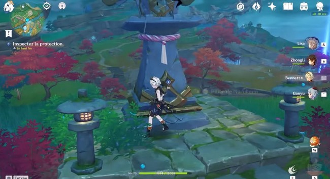 Pour la première partie, le pilier de narukami se trouve juste à côté de Kaji. L’emplacement est marqué par l’indicateur de quête. Lorsque vous interagirez avec le pilier de narukami, il vous dira que deux composants critiques sont nécessaires pour réparer le pilier.