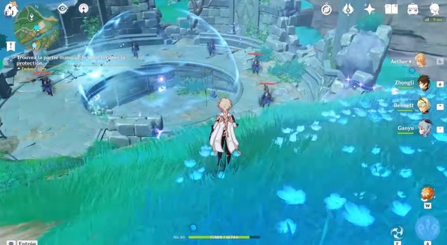 Pour rechercher les parties manquantes, vous devez utiliser la vue élémentaire pour regarder autour de vous. Pendant que vous scannez la zone, cela vous amènera finalement à un endroit avec une boule violette encerclée par un dôme et plusieurs monstres. Il est préférable de vaincre tous les monstres encerclant le dôme avant de tenter de résoudre l’énigme.