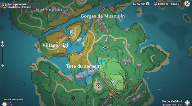 L’emplacement sur l’île Yashiori est indiqué sur la carte comme étant la Tête du Serpent. L’emplacement est marqué par l’indicateur de quête. Le pilier est gardé un gardien. Éliminez l’ennemi et interagissez avec le pilier.
