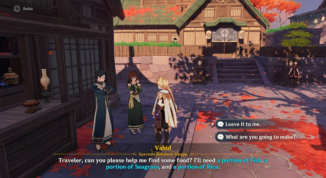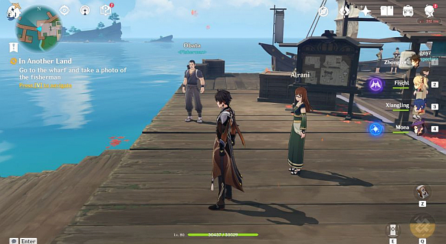Suivez Alrani → Rendez-vous sur les quais et prenez des photos des pêcheurs → Parlez avec Obata