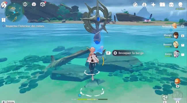 Vous pouvez invoquer la barge, il est préférable de faire naviguer avec votre barge plutôt que de nager et de perdre de l’endurance.