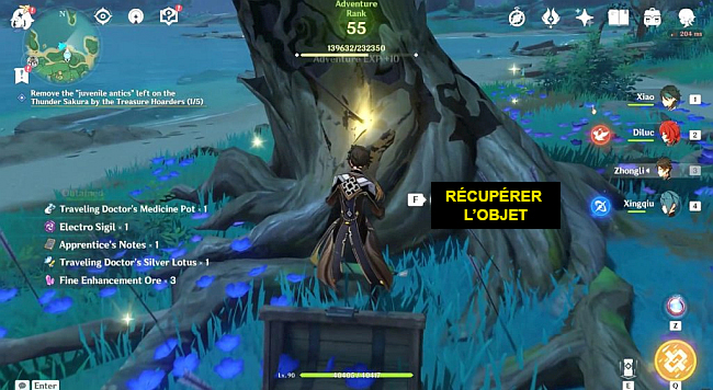 Récupérez les objets laissés par les Pilleurs de trésors près des cerisiers tonnerres