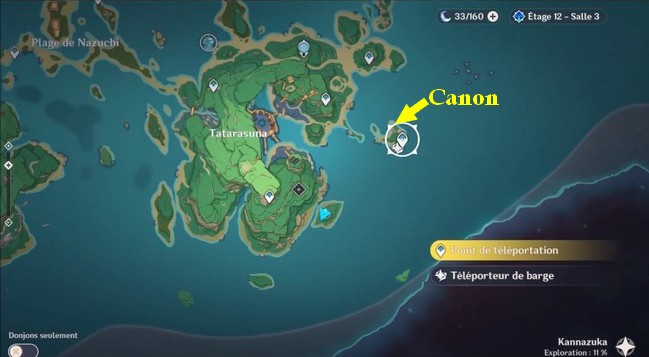 Pendant la quête, vous obtiendrez la carte des canons de Kamuijima qui révèle l’emplacement des 3 canons. Après cela, vous obtiendrez l’accès à ces 3 canons.