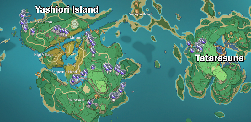 Si vous cherchez à cultiver de la moelle cristalline, il vous faudra quitter les côtes du continent. En l’état actuel des choses, le seul endroit où trouver ces plantes se trouve sur les îles d’Inazuma. Le plus grand groupe d’entre elles se trouve dans l’île Yashiori. La récolte de toutes ces plantes vous permettra d’obtenir un grand pourcentage de tous les nœuds disponibles. L’autre endroit le plus évident pour récolter de les moelles cristallines est près de l’entrée de Tatarasuna.