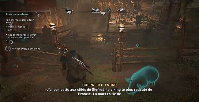 Vous devez ramener les porcs à leur enclos : Les cochons vous suivront si vous sifflez près d’eux.