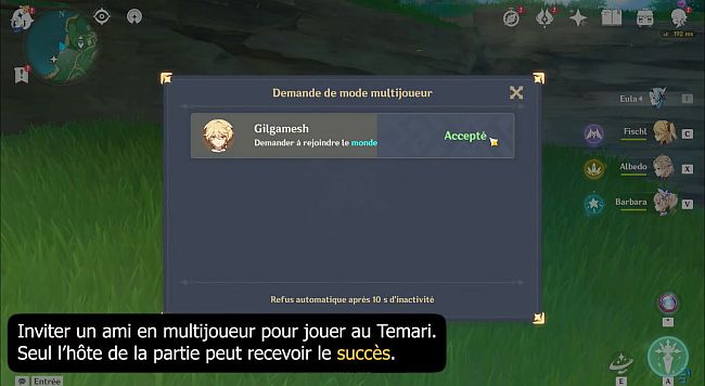 Inviter un ami en multijoueur pour jouer au Temari. Seul l’hôte de la partie peut recevoir le succès.