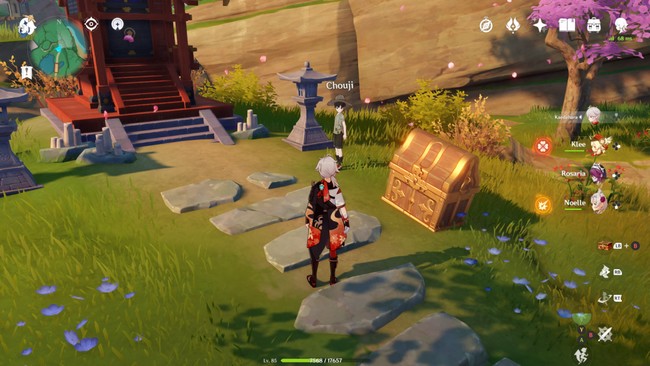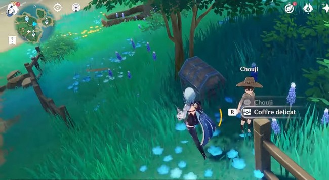 Le trésor se trouve près de Chouji, près d’un arbre et d’une statue au bord d’une falaise. Normalement, vous devriez être en mesure d’explorer la zone et de trouver les objets.