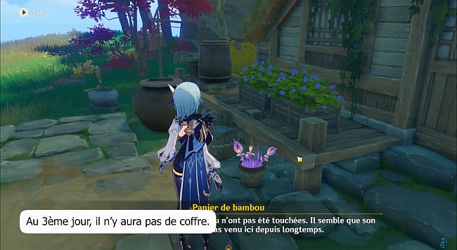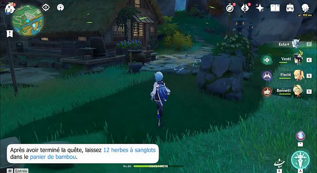 Après avoir terminé la quête, laissez 12 herbes à sanglots dans le panier de bambou.