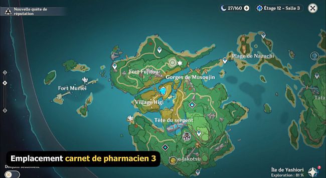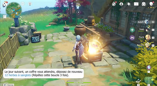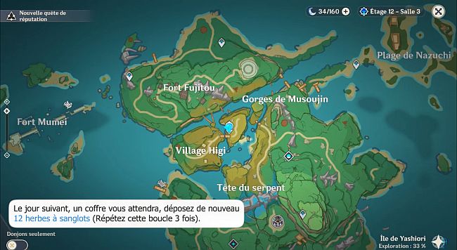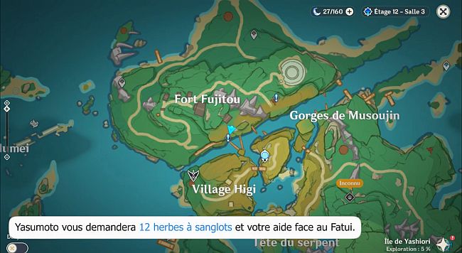 Durant la quête Traitement de l’île : Yasumoto vous demandera 12 herbes à sanglots et votre aide face au Fatui