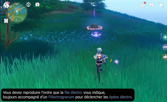 Vous devez reproduire l’ordre que la fée électro vous indique, toujours accompagné d’un Électrogranum pour déclencher les épées électro.