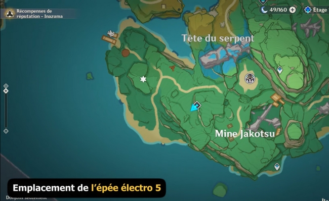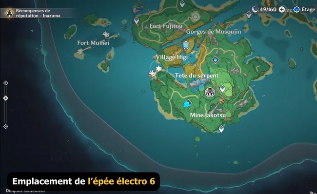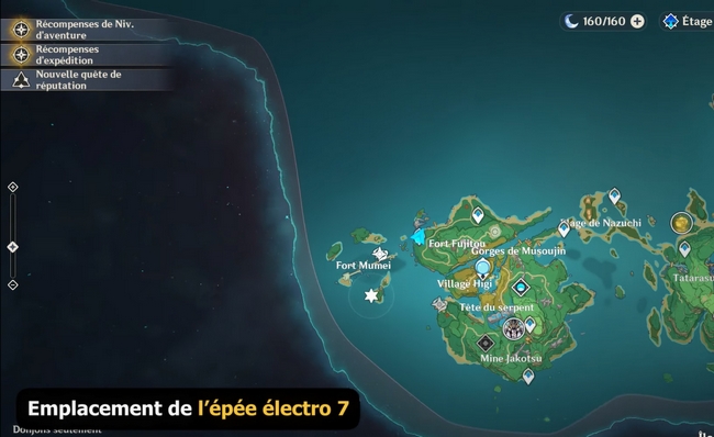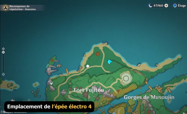 L’épée se trouve sur l’île au sud de Fort Mumei, à l’endroit indiqué sur l’image ci-dessus.