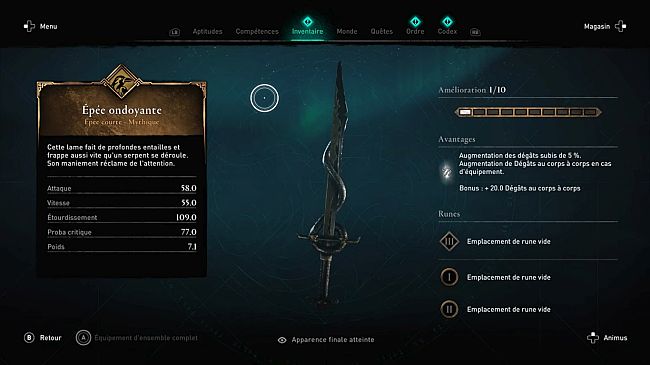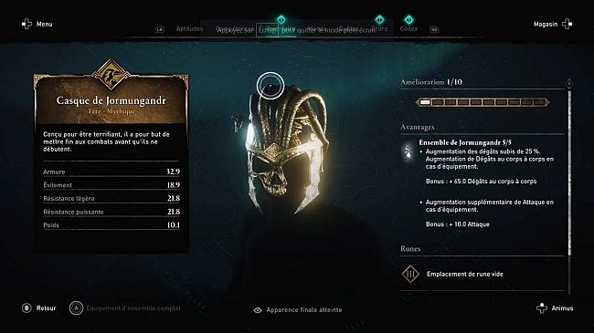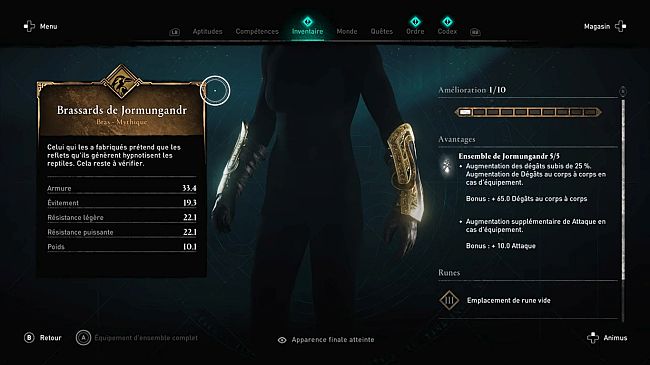 - Augmentation supplémentaire d’Attaque en cas d’équipement.