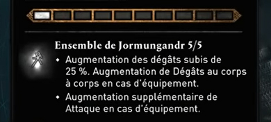 - Augmentation des dégâts subis de 25%. Augmentation de dégâts au corps à corps en cas d’équipement.