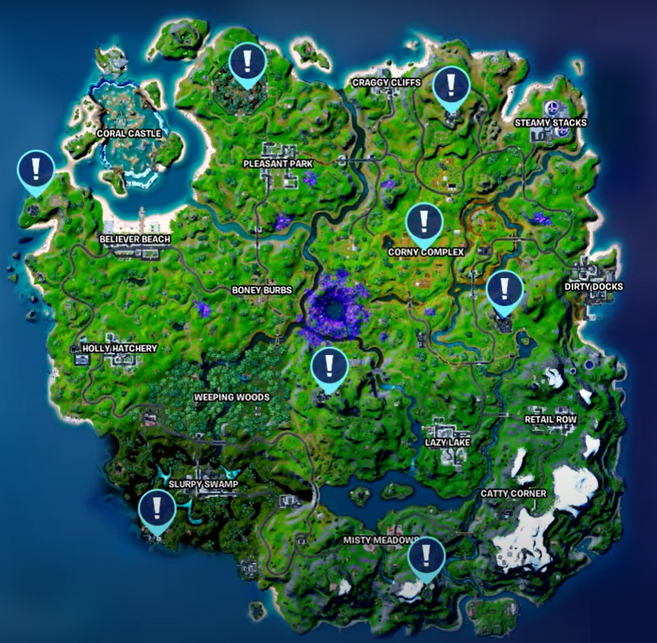 Celle-ci en particulier vous demande de transporter un échantillon extraterrestre depuis un certain nombre de bases IO jusqu’au Corny Complex, qui est un endroit plutôt populaire de la carte Fortnite.
