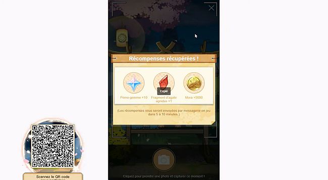 Les récompenses vous seront envoyées par messagerie en jeu  dans 5 à 10 minutes