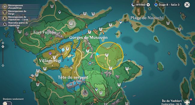Vous devez vous téléporter au nord du Fort Fujitou comme indiqué sur l’image en dessus.