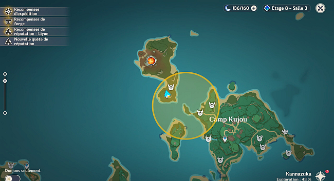 La neuvième zone vous emmène près de l’hypostase Pyro, au nord-ouest du camp Kujou. Vous trouverez des ennemis qui vont vous tendre une embuscade.