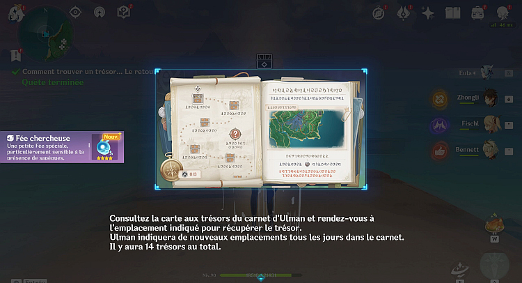 Vous devez parler Ulman en rejoignant l’endroit indiqué sur votre carte. Il vous remettra la Fée chercheuse pour vous aider à trouver les trésors.