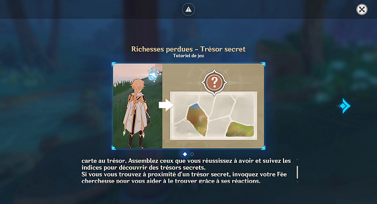 Vous trouverez aussi des morceaux de cartes : Assemblez ceux que vous réussissez à avoir et suivez les indices pour découvrir des trésors secrets. Si vous vous trouvez à proximité d’un trésor secret, invoquez votre Fée chercheuse pour vous aider à le trouver grâce à ses réactions.