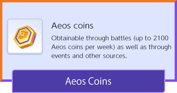 Les pièces Aeos sont utilisées pour acheter des « Licences Pokémon » qui permettent au joueur d’incarner différents Pokémon. Ces licences Pokémon coûtent entre 6 000 et 10 000 pièces Aeos.